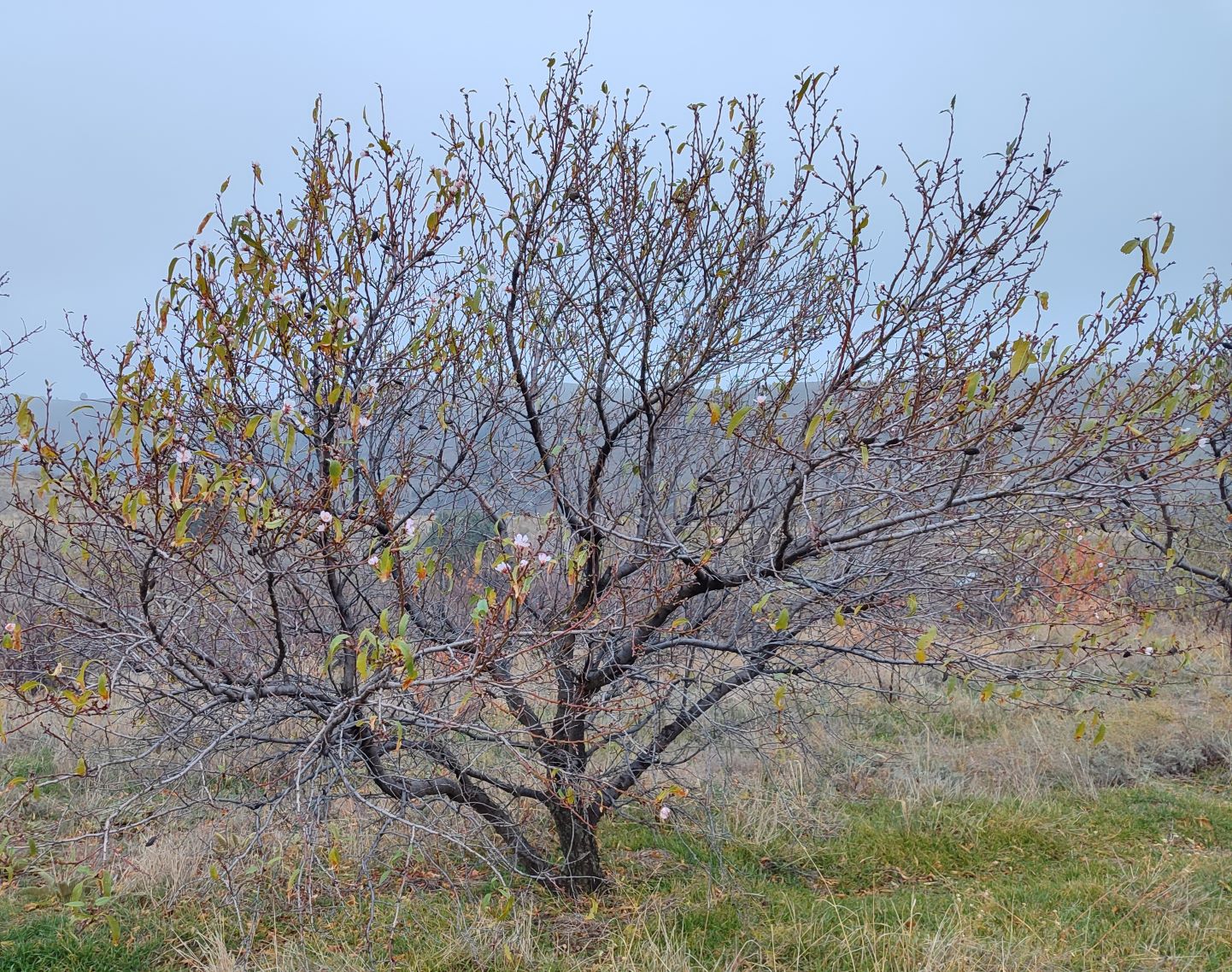 Хочу дать вам пример того, как не просто найти ответ на вопрос, меняется ли климат, или не меняется. 7-го декабря, у нас зацвел миндаль сорта "Гахарбай". 7-го ДЕКАБРЯ! Еще не все листья на нем пожелтели и опали, а он уже зацвел!